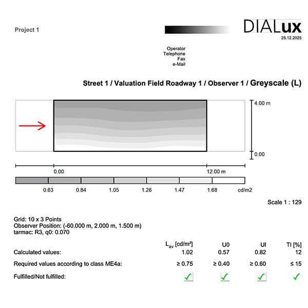 在项目初期阶段,工程团队可通过 DIALux 等专业软件进行照度模拟与光效分析,根据实际应用场景进行方案建议。例如道路照明的均匀度控制、灯杆高度选择、灯具布置方式等。方案内容可包含灯具布局、透镜角度选择以及眩光控制等因素,以兼顾视觉效果与实际使用需求。