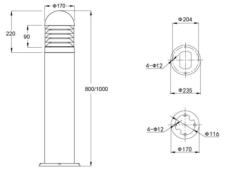 YMLED-6203A 户外装饰型 LED 草坪柱灯采用经典三段式结构设计。顶部为圆润的半球形 UV 防护 PC 灯罩,能够提供柔和且大范围的漫射光;中部为高光银色或深灰色压铸铝灯柱,线条简洁利落;底部为稳固的圆形底座,增强整体稳定性。整体设计兼顾现代感与实用性,可自然融入草坪、步道或庭院景观环境。