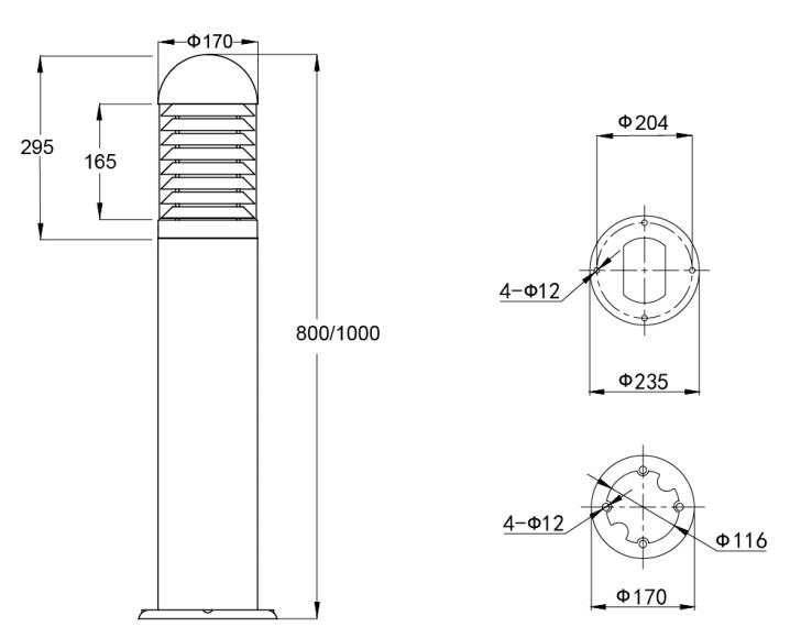 提供 600mm/800mm/1000mm 三种高度规格。支持 DALI 智能控制或基础开关控制,可灵活接入各种户外照明系统。