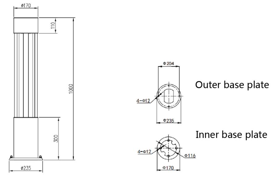 表面处理:RAL颜色定制;抗UV聚酯粉末喷涂;可选盐雾测试 >1000小时