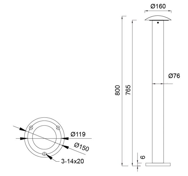 产品具备 IP65 防尘防水等级和 IK09 抗冲击性能,可在 - 30°C 至 + 50°C 的环境中稳定运行。灯具提供 600mm、800mm、1000mm 三种高度规格,对应重量分别为 4.5kg、5kg、5.5kg。支持 DALI 调光或 ON/OFF 控制,适用于花园与草坪照明应用。