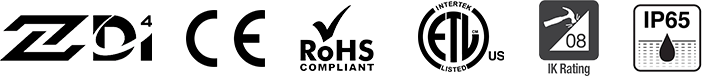 • IP65 IK08 适用于户外安装,具备较高的防护与抗冲击能力