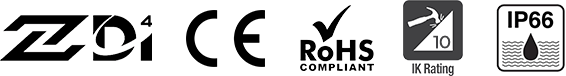 • IP66 IK10 适用于户外安装,具备较高的防护与抗冲击能力