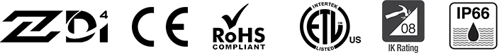 • IP65 IK08 适用于户外安装,具备较高的防护与抗冲击能力